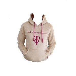 Avec son Sweat à capuche coupe slim couleur sable 100% coton épais. EG Campshare et logo brodé sur le devant.