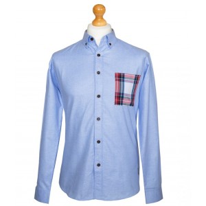 Cette chemise Palam denim de couleur bleue avec une poche contrastée a une coupe ajustée et est en 100% coton