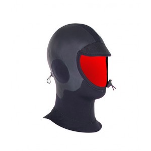 Au niveau des oreilles le néoprène est plus fin pour mieux entendre et ne pas être gêné. La cagoule possède aussi une visière pour éviter d'être embeté par l'écoulement de l'eau sur le visage et vous rajoute une protection solaire.