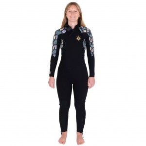 Combinaison Femme Mellow Sea Anfibi double-zip 4/3 mm (Floral/Noir)