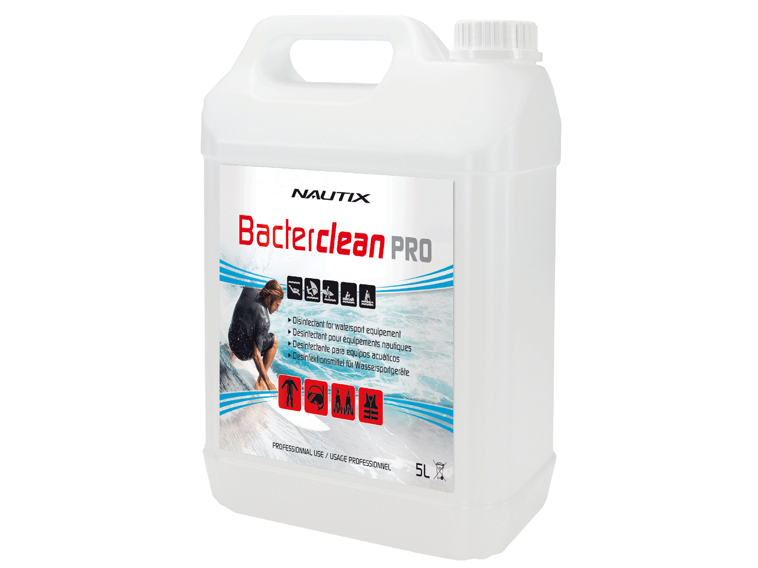 Le BACTERCLEAN est un Nettoyant/Désinfectant antibactérien spécifiquement formulé pour nettoyer les vêtements néoprènes et équipements nautiques.