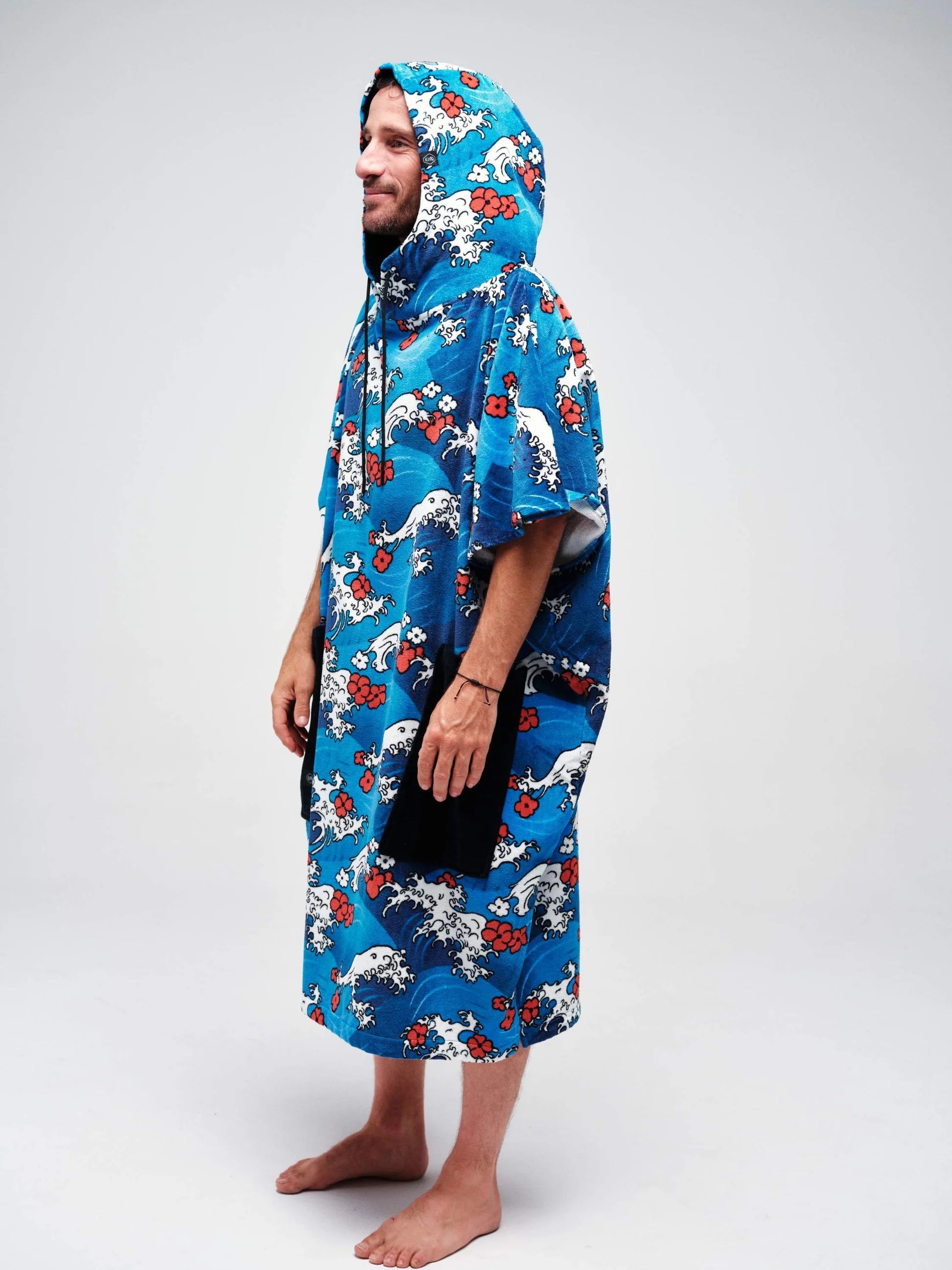 Le poncho Nippon Wave d’ALL-IN est un poncho en V pour adulte, conçu pour les pratiquants de surf et autres sports nautiques. En coton éponge velours 380 g/m², il est doux, absorbant et très confortable. Sa coupe en V aux épaules facilite les mouvements et rend le changement de tenue rapide et discret. Capuche doublée, poches latérales, finitions soignées : il a tout pour vous accompagner après chaque session. Certifié OEKO-TEX® et AZO free. Taille unique pour adultes entre 1m63 et 1m90.