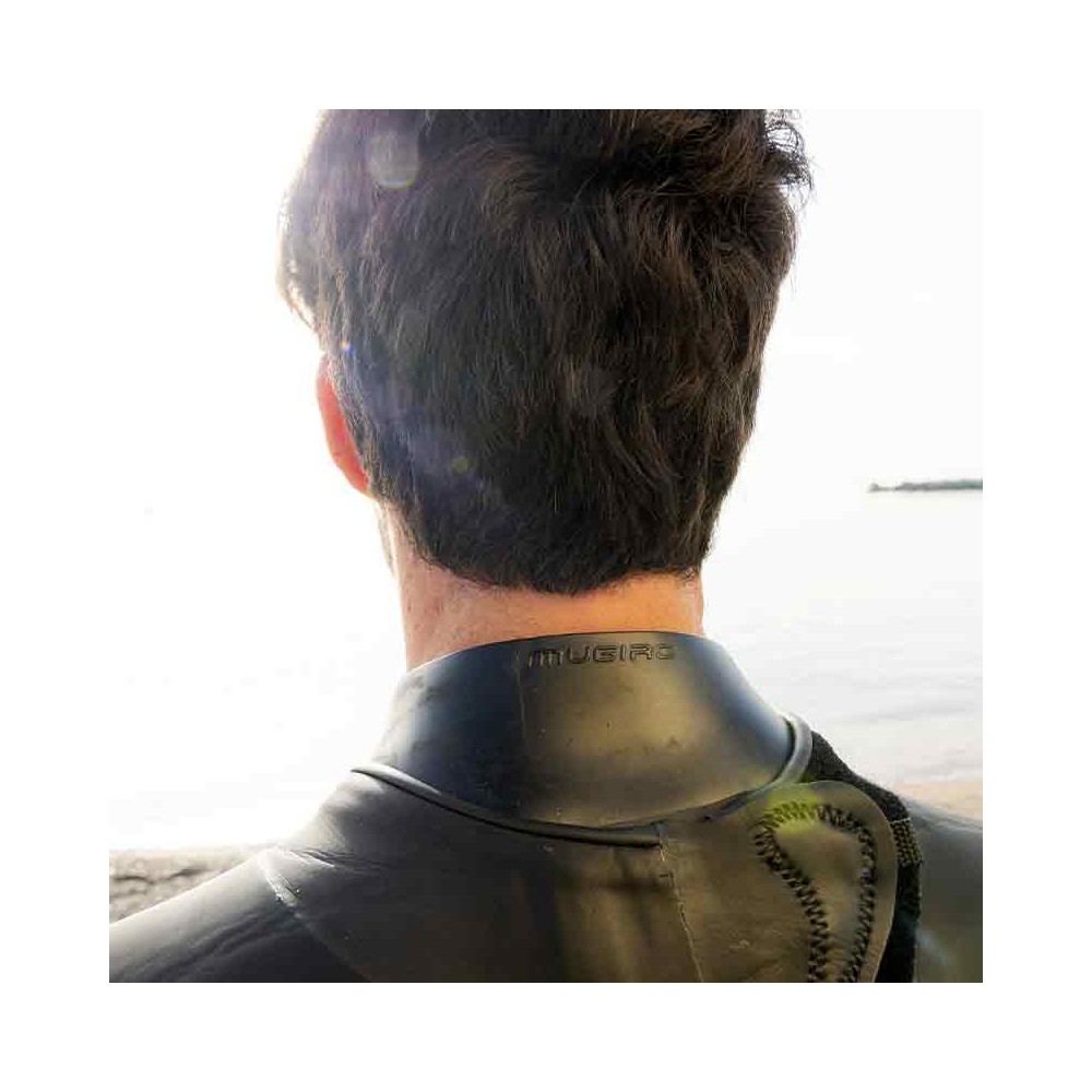 Le protège-cou Mugiro est un accessoire technique pensé pour les nageurs, triathlètes et sportifs en combinaison néoprène. Il limite les échauffements et rougeurs fréquents au niveau du cou causés par les frottements répétés dans l’eau.